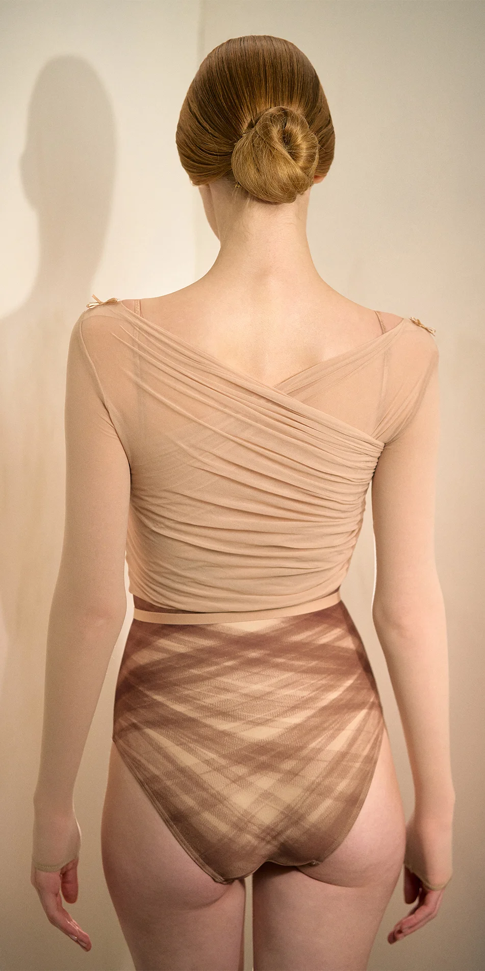 Each leotard arrives in a custom-designed mesh drawstring bag, created to reflect the identity of each collection. It’s made to serve beyond packaging. Use it as a wash bag for your leotards, a pointe shoe bag for ballet practice, or a pouch for everyday essentials, even fruits and veggies from the market.