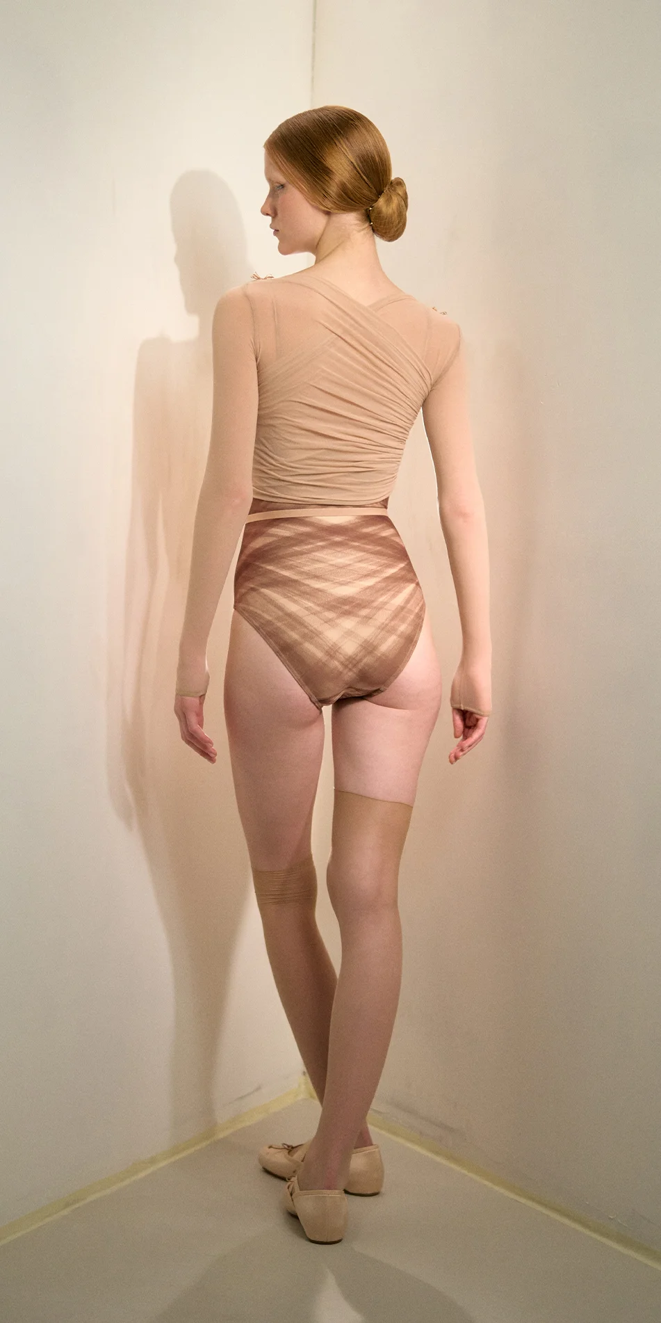 This series draws inspiration from the spontaneous ways dancers repurpose tights – cutting and
