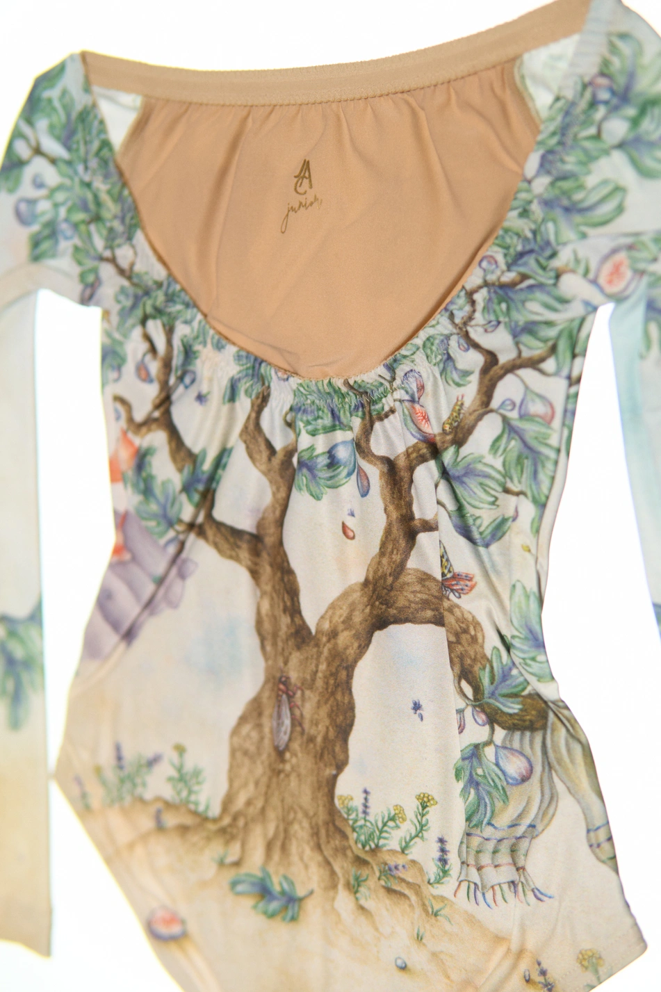 In printed, certified/recycled superfine/second skin jersey, double layered torso.
