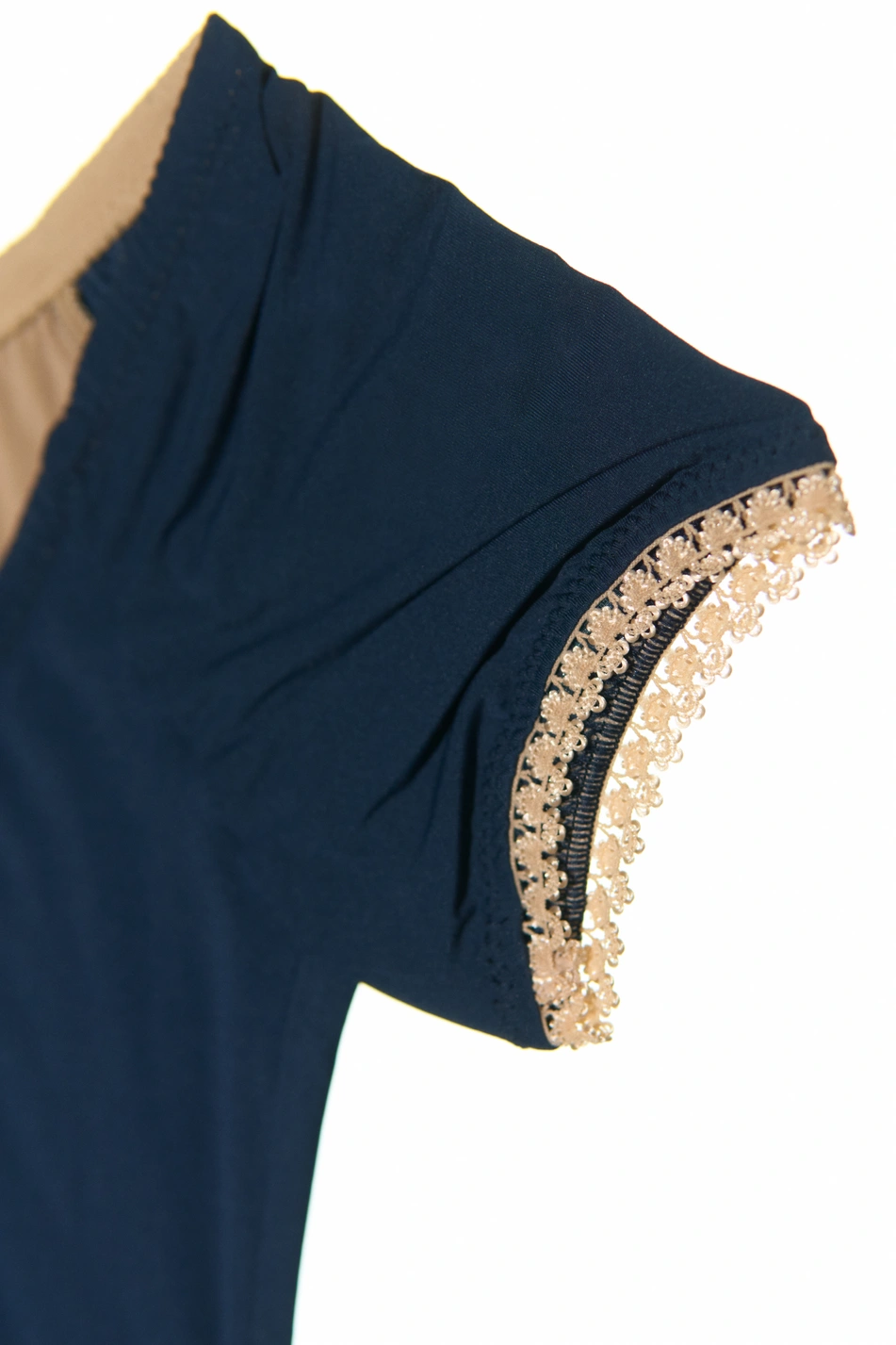 PETROL – boatneck leotard with upcycled cap sleeves – blue