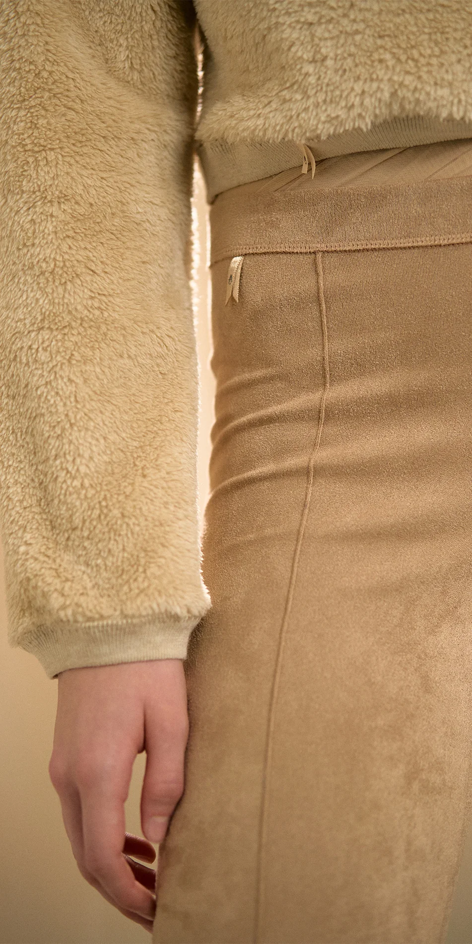 Wear it over leotards, tops, or casual pieces for added coziness. Offered in Latte.