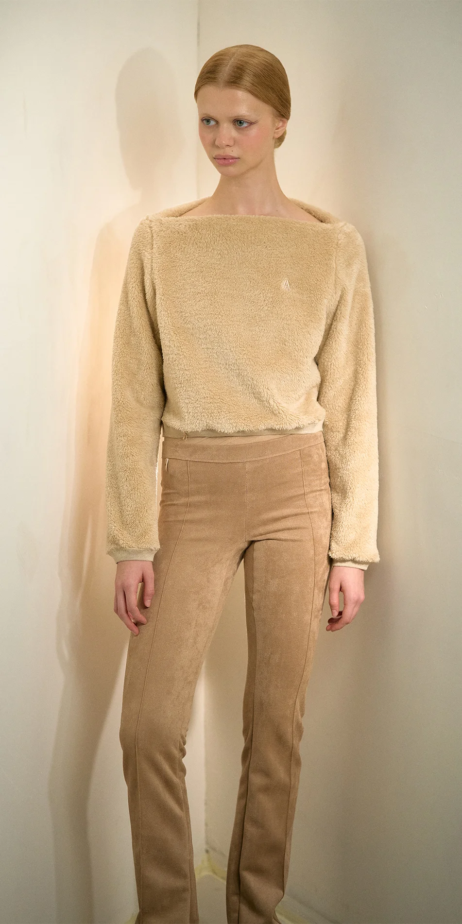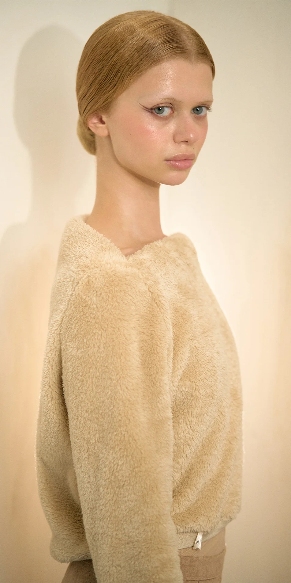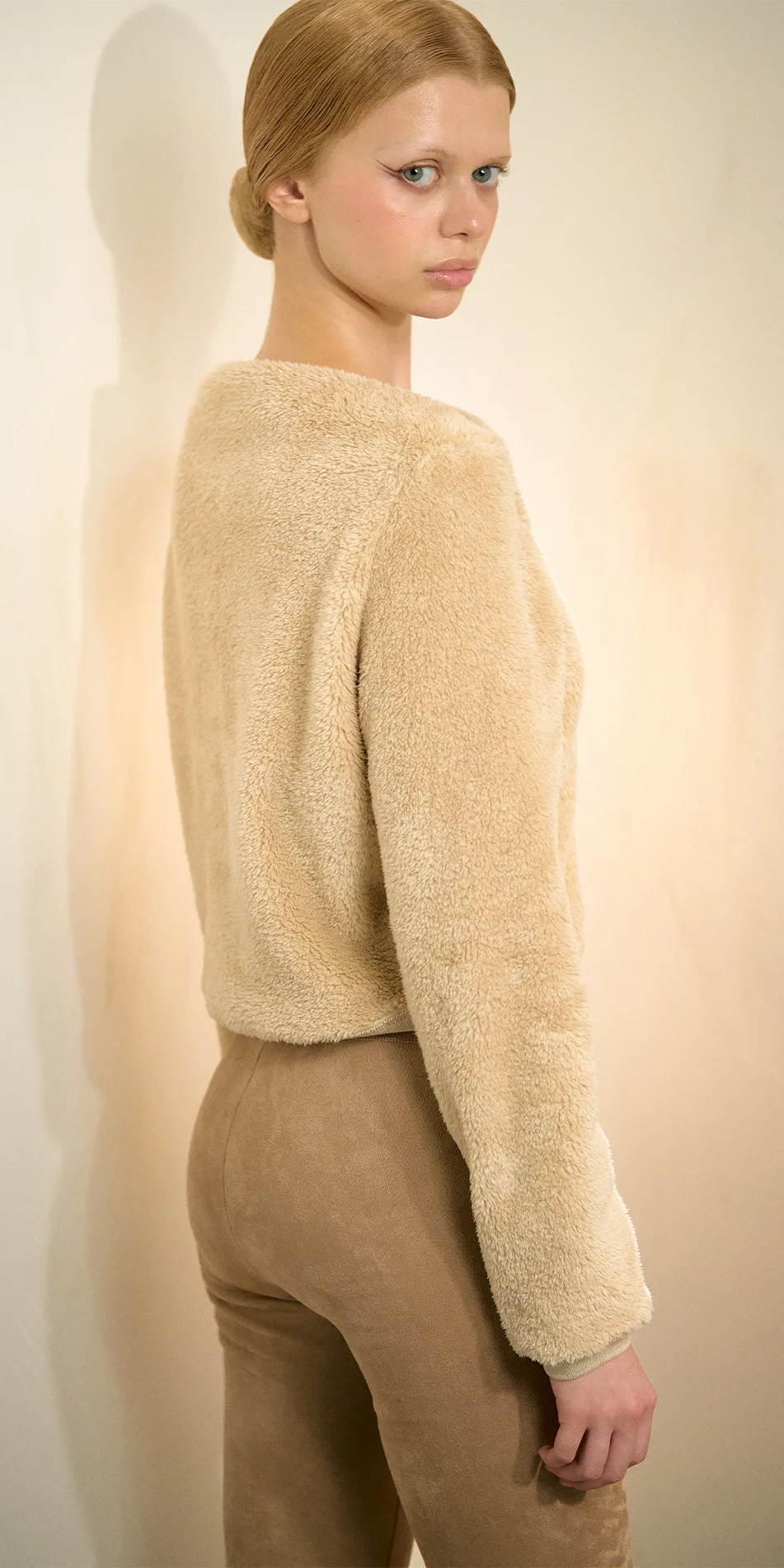 A cozy addition to the Plushy Câlin series, this fleece sweater brings warmth and softness to everyday layering. Designed in a relaxed pull-over style, it features a clean boatneck and ribbed sleeves for an easy, comfortable silhouette.