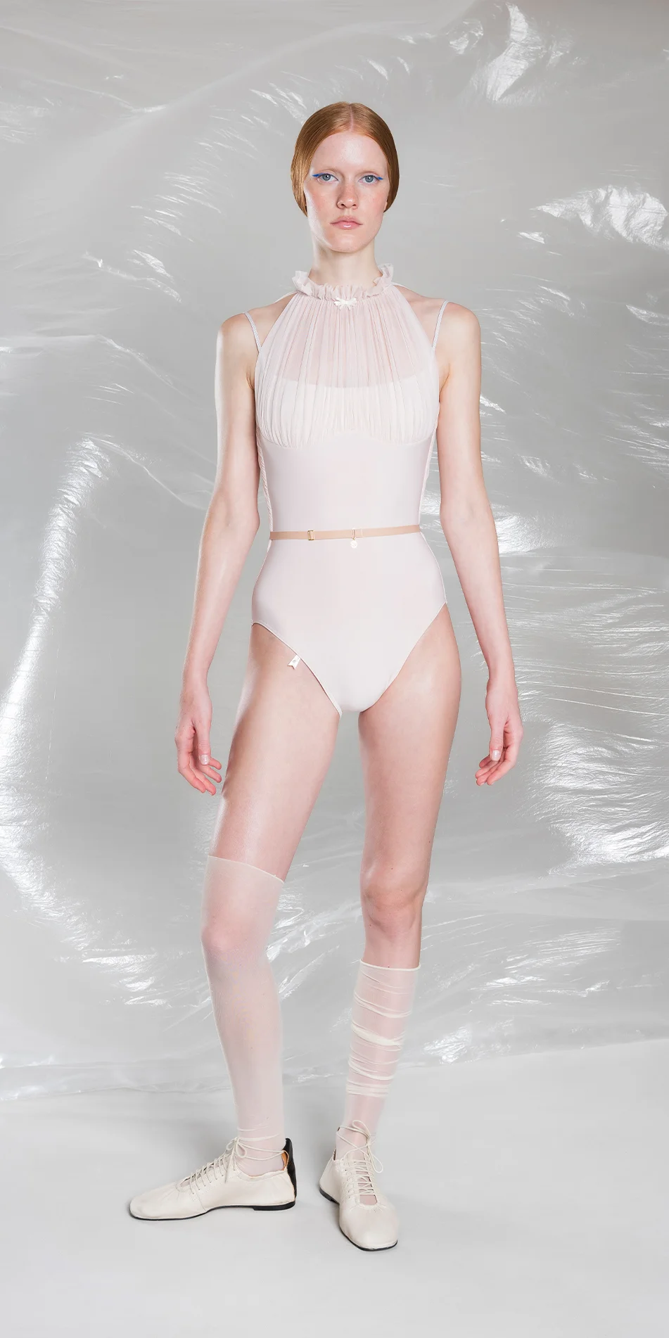 Wear it for studio practice and performance, or make it the centerpiece of your look. Offered in shades of Edelweiss and Pearl blush.