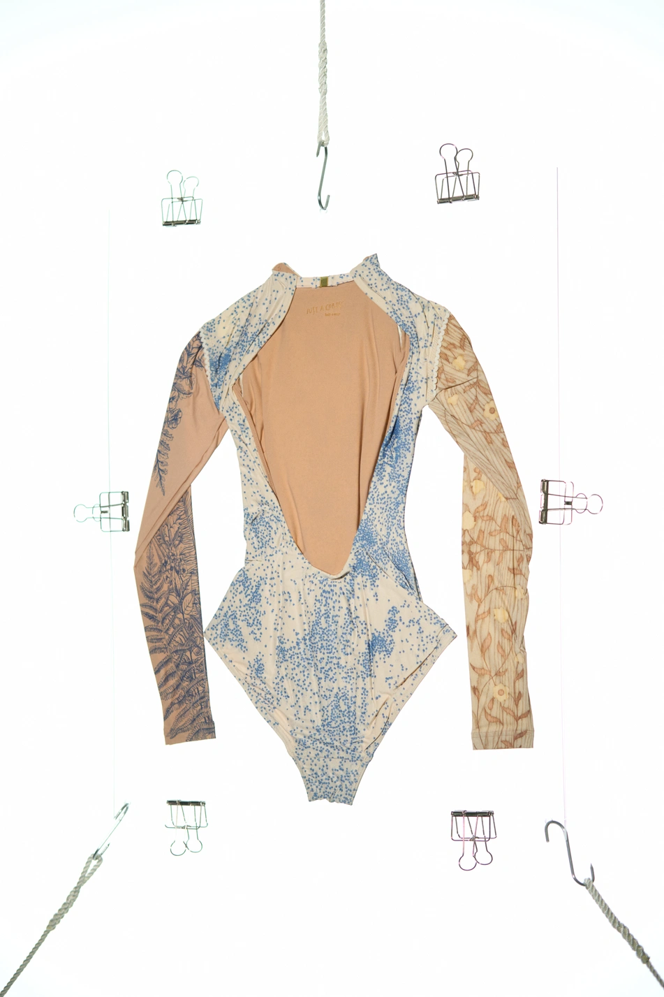SPRINKLE DOT – low back leotard with mixed long sleeves – blue