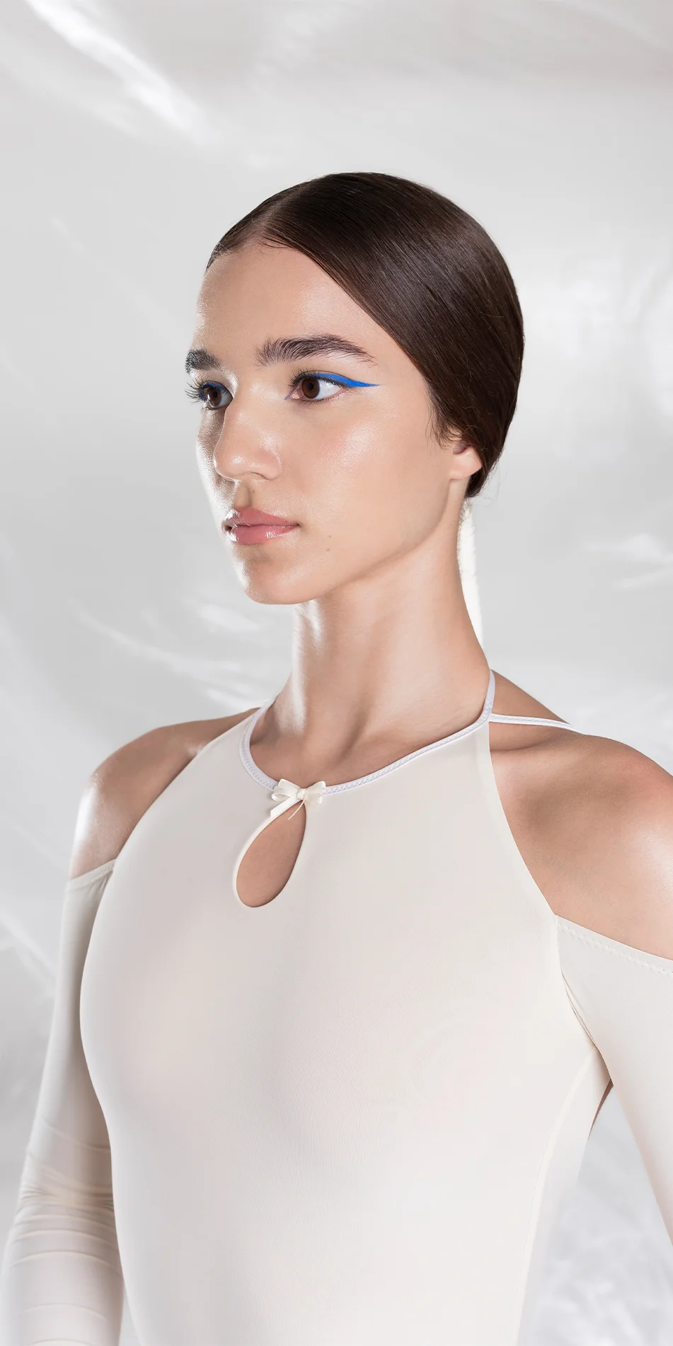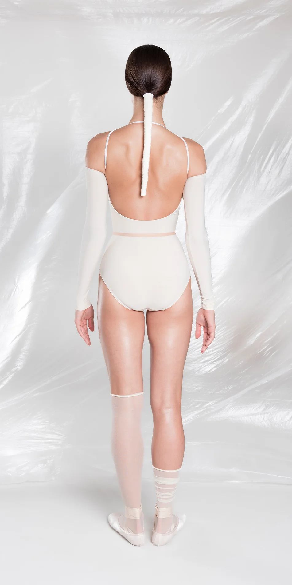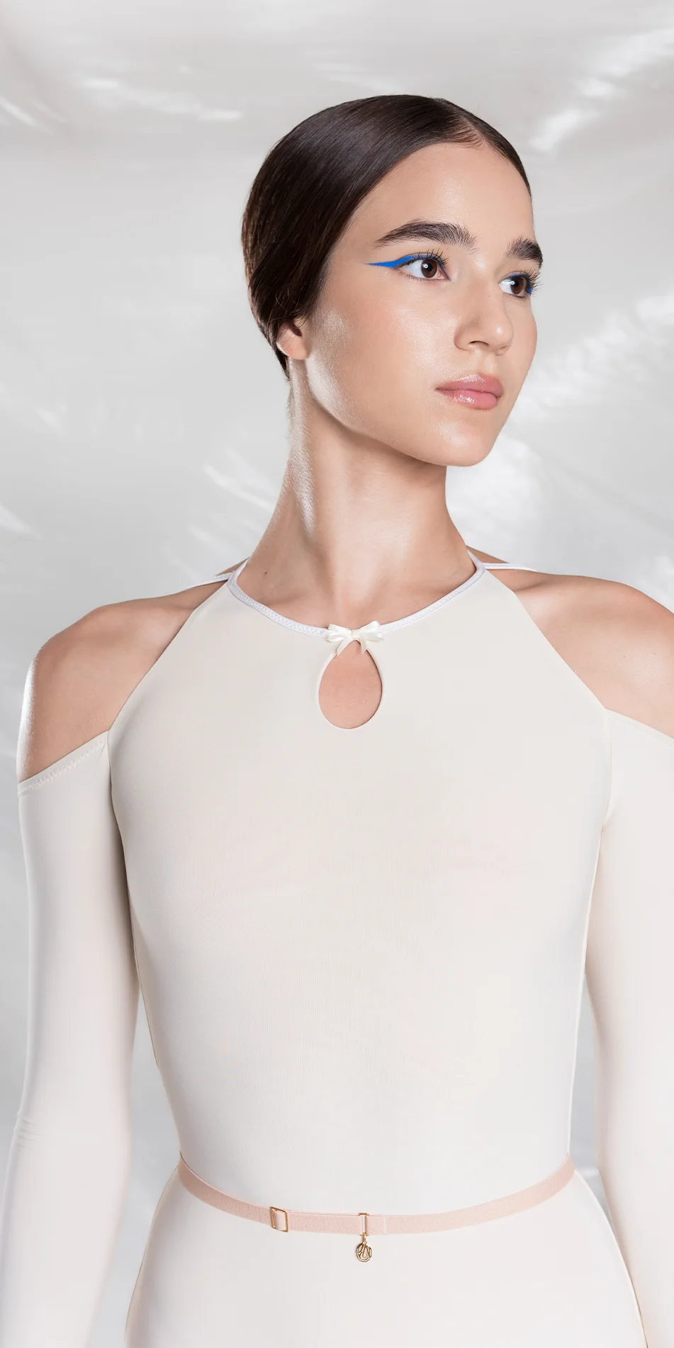 Designed for both studio and everyday settings. Wear it to studio practice and rehearsal, or layer with jeans or skirts as part of a daily wardrobe. Offered in the shade of Edelweiss and Pearl blush.
