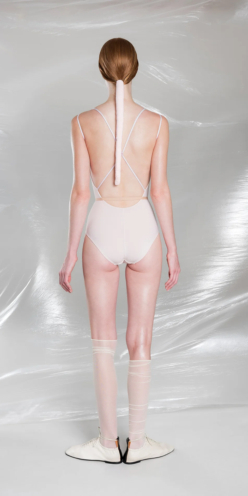 The Teardrop leotard with a cross-back design and two cut-outs. A lowered back adds openness, while double straps provide stability and a secure fit. It offers a refined take on the traditional ballet practice uniform.