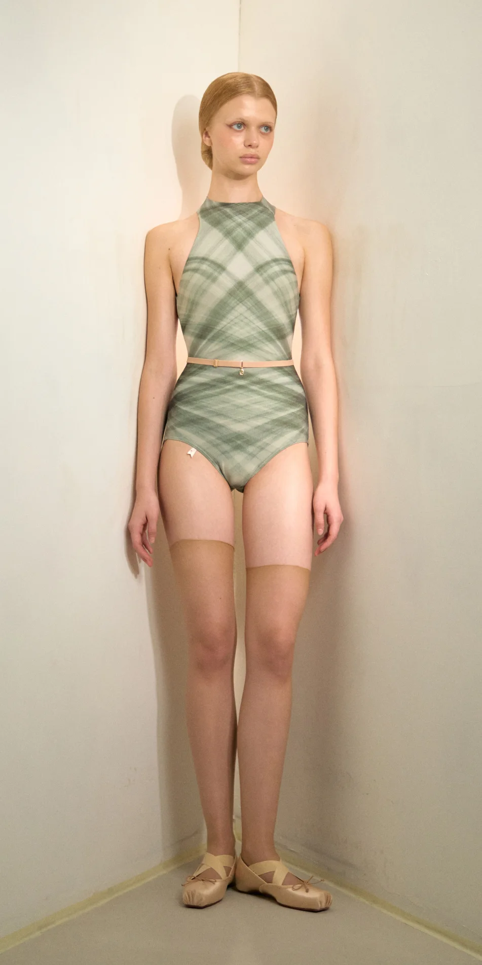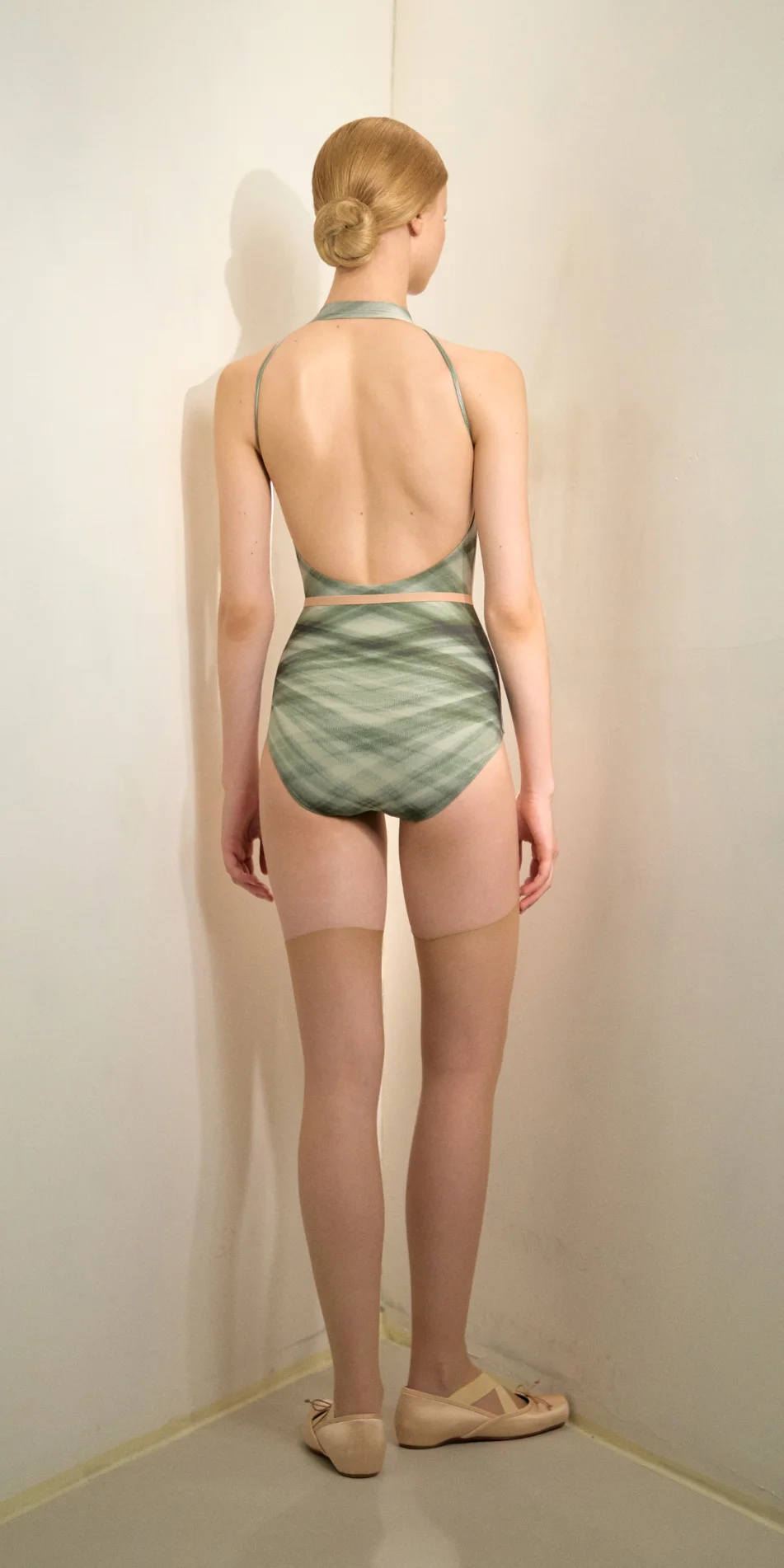 Where JAC’s signature printed design meets couture technique. The Tulle Plié leotard features a body-placed print created by draping tulle fabric on a mannequin and translating it into a flowing composition that sits naturally along the torso.